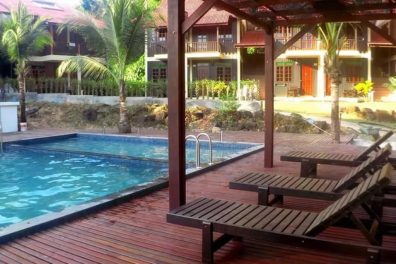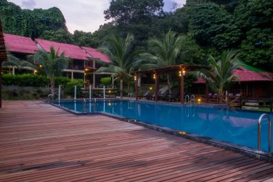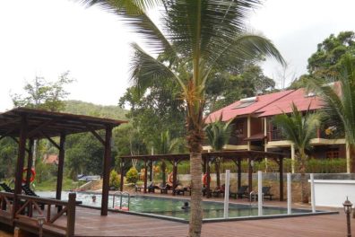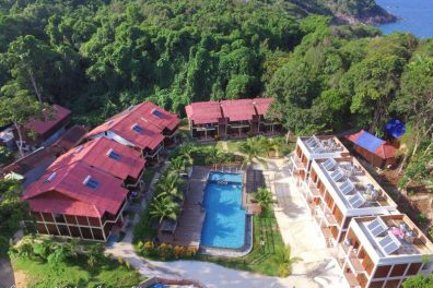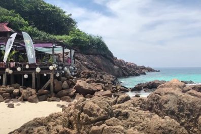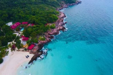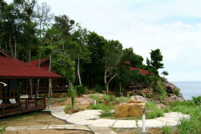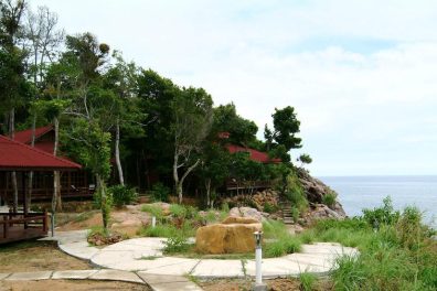 The resort has built overlooking the bay with crystal clear blue seawater, being built on the boulders against backdrop of the hillside and fronting the beach at Redang Island.